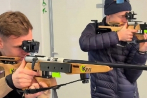 体育资讯2月16日讯 拜仁中场基米希在近期进行了跨界体验,他与挪威冬奥射击选手约翰内斯-廷内斯-伯厄进行了射击对决。
