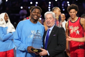 记者问道:“2028年洛杉矶奥运会几年后就要举行了。我想知道你觉得这次全明星赛是如何为那次奥运会做铺垫的?如果这个赛制保留下来,这些记忆会让人们记住你今晚拿了这么多分。你是MVP。明年和后年谁也说不准。你觉得这会为2028年洛杉矶奥运会积蓄什么样的能量?”