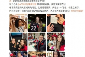 体育资讯2月20日讯 今日,花滑名将隋文静更新社媒,向破奥运纪录夺得男子1500米短道速滑金牌的宁忠岩送上祝贺,并晒出了受邀前往圣西罗球场观战AC米兰比赛并获赠纪念球衣照片。