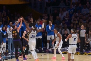 GIF-东契奇单打造成小卡特三分犯规