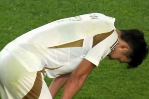 第76分钟,洛杉矶FC反击,左路外脚背弧线传球,孙兴慜即将形成单刀,被阿古斯汀·博扎特拉倒,主裁再次出示红牌,将博扎特罚出场↓
