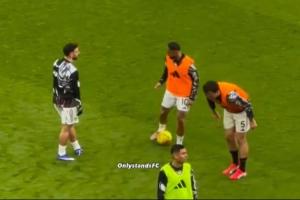 体育资讯03月03日讯 英超第28轮,曼联主场2-1逆转水晶宫,赛前热身时,有球迷拍到库尼亚在B费面前展示安东尼招牌“圆规”转圈。