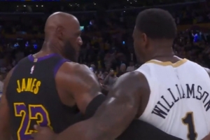 GIF-锡安和老詹拥抱聊一聊~!!
