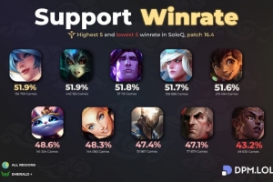 体育资讯3月7日讯 英雄联盟下路单排胜率:辅助最高琴女,AD最高大嘴。