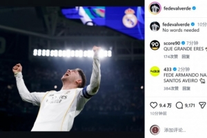 巴尔韦德社媒晒出庆祝进球的照片,配文:“无需多言。”