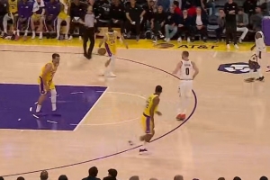 GIF-东契奇要害被打到