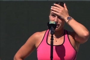 体育资讯3月16日讯 WTA1000印第安维尔斯决赛,萨巴伦卡2-1逆转莱巴金娜夺冠,萨巴伦卡在颁奖仪式上发表了演讲。