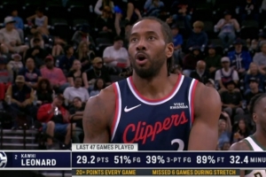快船主场迎战雄鹿,转播方晒伦纳德数据: