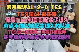 朱开赛后锐评锐评:TES输AL很正常,但是Tian和哥哥配合了很久,有点不像以前配合很久的队友,TES是一定需要二阶段打进世界赛,今年世界赛会竞争非常激烈。