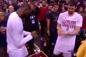 詹姆斯与前队友浓眉和克里斯蒂互动