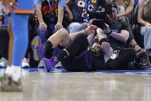 雷霆球迷嘲讽东契奇 不断重复:他真受伤了哈?他根本没受伤!