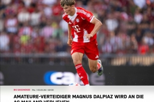 拜仁官方写道:“天才边后卫达尔皮亚兹离开拜仁慕尼黑,以租借形式加盟意大利传统豪门AC米兰,租期至今年夏天。”
