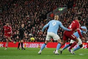 哈兰德在安菲尔德首球!看台上老爸到了也乐了