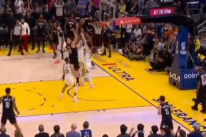 最后时刻,勇士未喊暂停,库里持球推进到前场,挡拆后接变向回拉接撤步强拔三分球,无奈弹筐而出。梅尔顿空中补篮打进但是超时无效,全场比赛结束。