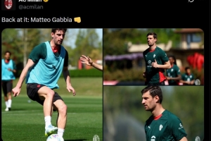 加比亚自2月底米兰对阵帕尔马的比赛后便一直因伤缺阵。今天,他重返合练,正式步入复出的最后阶段。