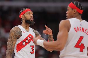 上半场比赛,猛龙前锋英格拉姆和斯科蒂·巴恩斯都发挥不错,进攻端内外线都状态在线,其中英格拉姆9中6,三分2中1,罚球2中2拿到15分2篮板2助攻1抢断;巴恩斯9中5,三分1中1,罚球3中3拿到14分4篮板1盖帽。